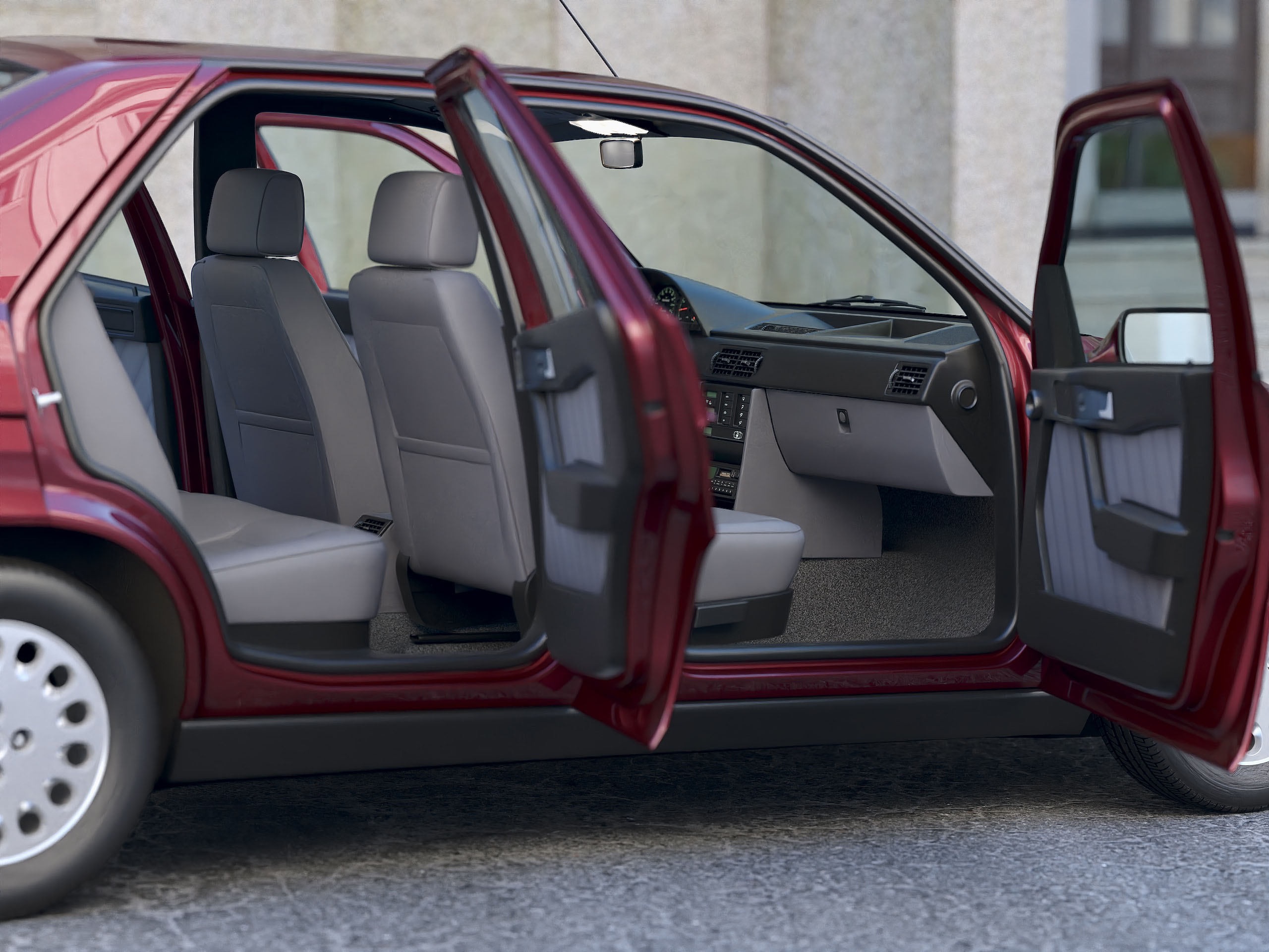 Polygon saving but accurate 3d model created according to real reference. Native format is Cinema 4d R21, model can use Hypernurbs subdivision. Other formats are exported in one resolution. Exported formats 3ds, max, fbx and obj are prepared well to work correctly with every standard modeling software such as Maya, Lightwave etc... Using FBX file for import is strongly recommended, because it preserves basic material properties, objects hierarchy, uvw coordinates and quad geometry. 3ds format preserves basic material properties, hierarchy and uvw coordinates, but all geometry is triangular. Max format includes hierarchy, quad geometry and standard materials. OBJ format preserves only quad geometry and uvw coordinates. Each format of model (except for OBJ) has hierarchy of parents and children objects ready to animate manually or using any car animation plugin. All mesh parts separated by material are jointed under one empty (no polygons) object used as their pivot. All materials, textures and objects are sorted well to make Your own materials for special render engines. ONLY native c4d version has some special following features. It is animated using Xpresso (no keyframes), Model in c4d format includes exterior and interior lighting, automatic reverse and brake lights. Textures are included with all files, main texture's size is 4096x4096 pixels split onto these channels - xxxtex.jpg (diffuse color), xxx_bum.jpg (bump), xxx_spe.jpg (specular color and intensity), xxx_ref.jpg (reflectance intensity), xxx_lum.jpg (luminance color). C4D version comes with standard and Vray materials. Previews were rendered using Cinema 4d R21 Studio, Physical renderer. Model scale unit is centimeters. Environment scene where the car is placed is not included! This model was created, saved and exported from Cinema 4d R21. Compatibility level with other versions may be restricted due to changes in versions of software. | |