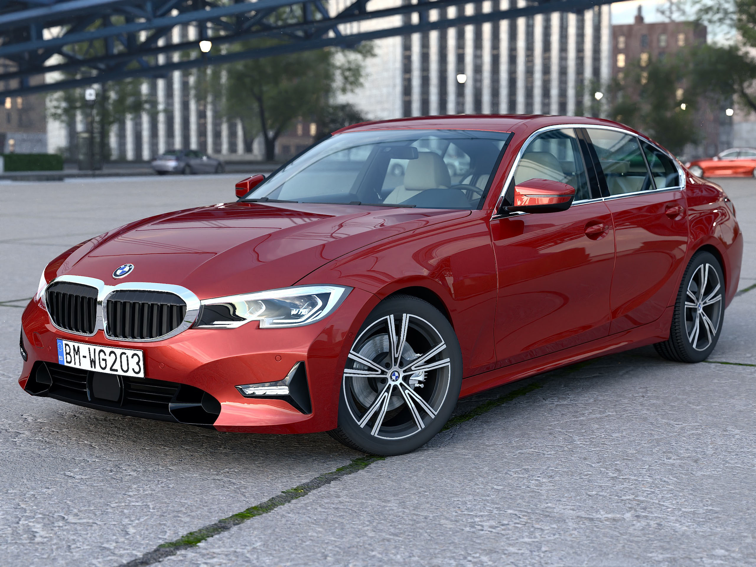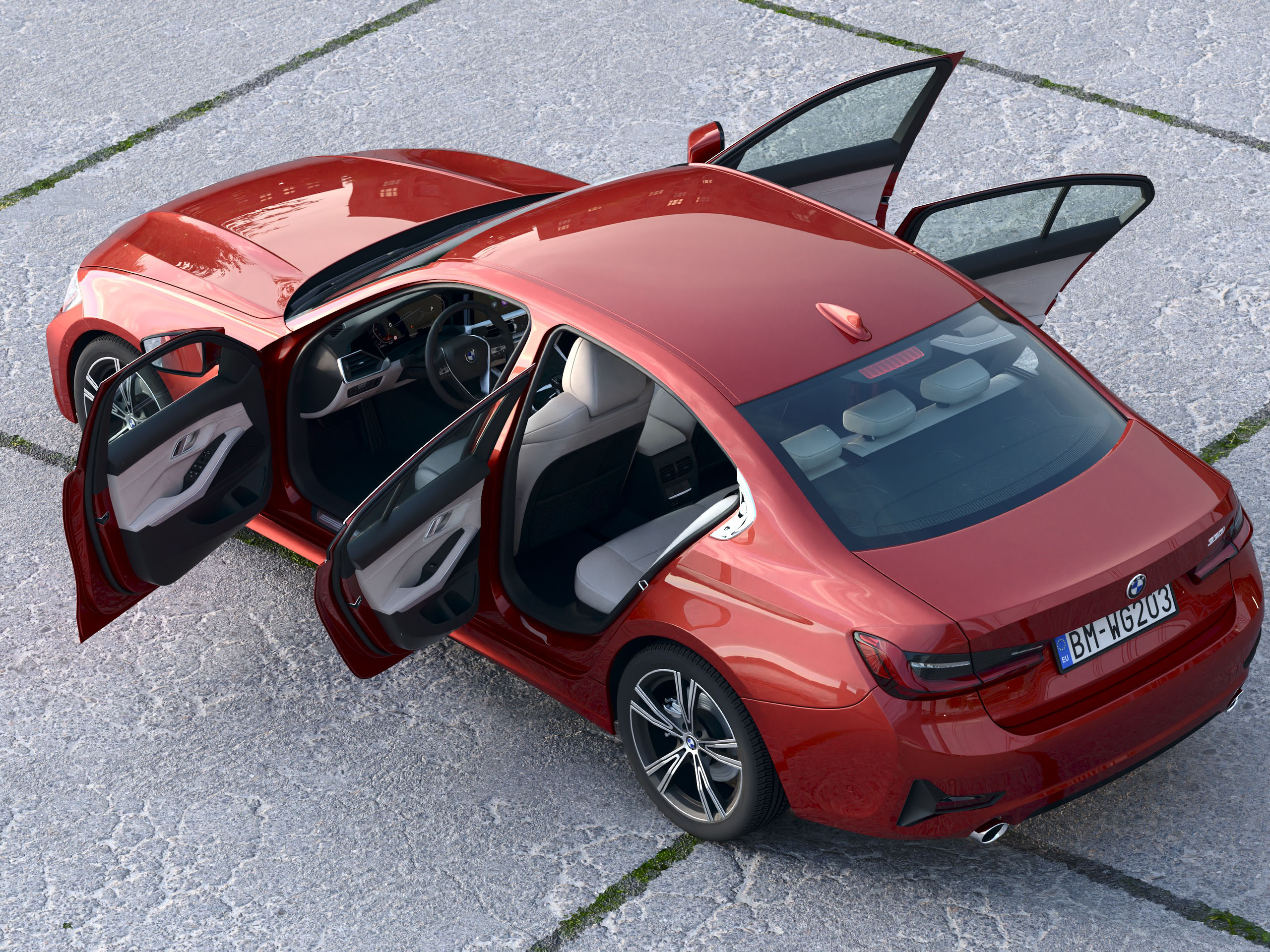 Textures are included with all files, main texture's size is 2048x2048 pixels split onto these channels - xxx_tex.jpg (diffuse color), xxx_bum.jpg (bump), xxx_spe.jpg (specular color and intensity), xxx_ref.jpg (reflectance intensity), xxx_lum.jpg (luminance color). C4D version comes with standard materials. Previews were rendered using Cinema 4d R20 Studio, Physical renderer. Model scale unit is millimeters. Environment scene where the car is placed is not included!