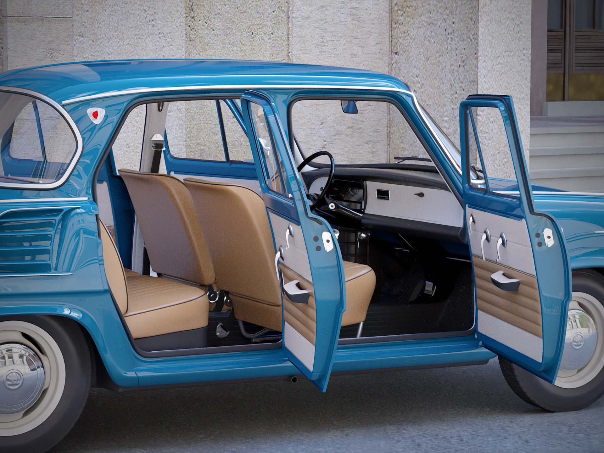 Polygon saving but accurate 3d model created according to real reference. Native format is Cinema 4d R21, model can use Hypernurbs subdivision. Vray version included. Other formats are exported in one resolution. Exported formats 3ds, max, fbx and obj are prepared well to work correctly with every standard modeling software such as Maya, Lightwave etc... Using FBX file for import is strongly recommended, because it preserves basic material properties, objects hierarchy, uvw coordinates and quad geometry. 3ds format preserves basic material properties, hierarchy and uvw coordinates, but all geometry is triangular. Max format includes hierarchy, quad geometry and standard materials. OBJ format preserves only quad geometry and uvw coordinates. Each format of model (except for OBJ) has hierarchy of parents and children objects ready to animate manually or using any car animation plugin. All mesh parts separated by material are jointed under one empty (no polygons) object used as their pivot. All materials, textures and objects are sorted well to make Your own materials for special render engines.