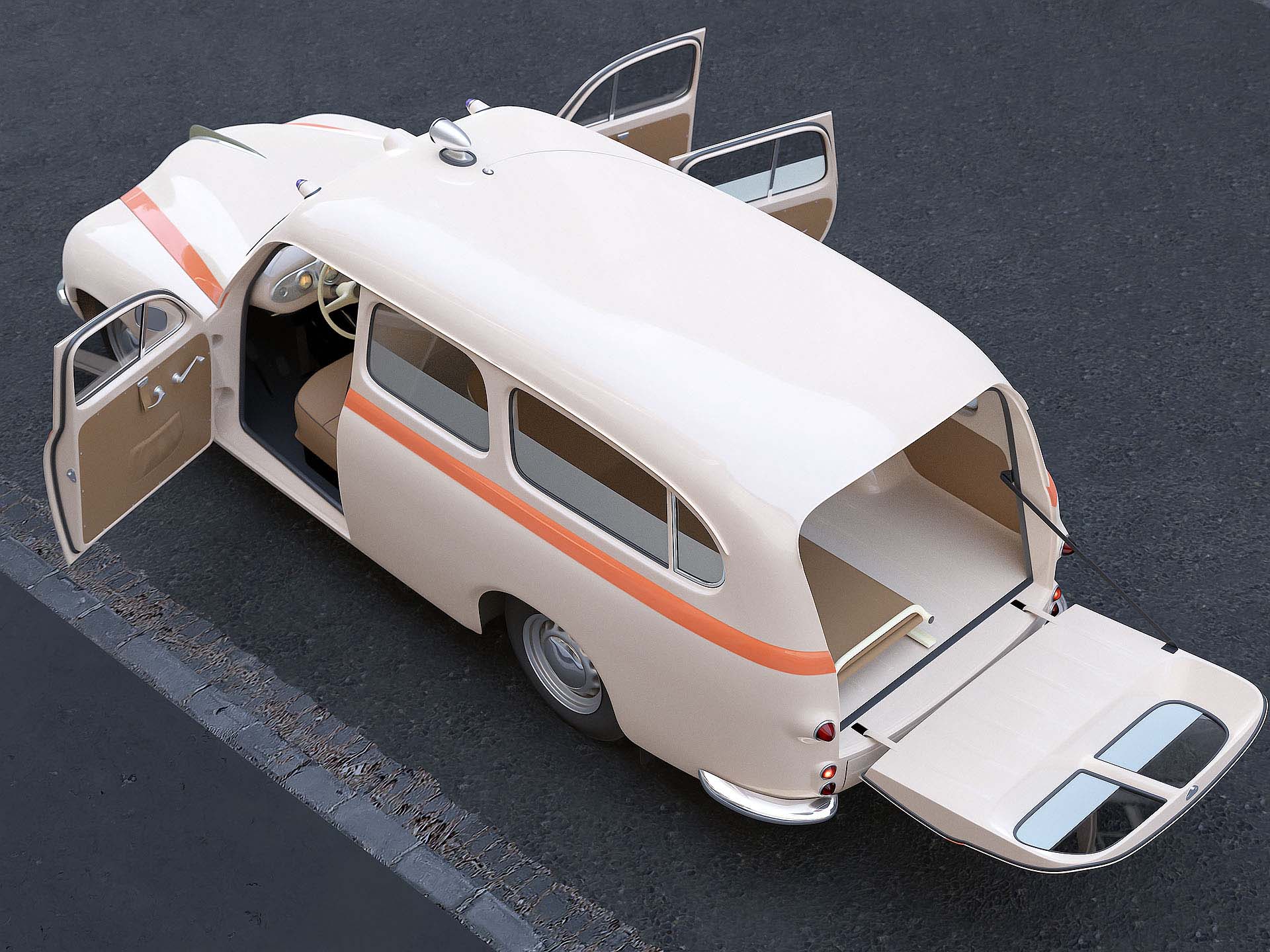 Polygon saving but accurate 3d model created according to real reference. Native format is Cinema 4d R20, model can use Hypernurbs subdivision. Vray version included. Other formats are exported in one resolution. Exported formats 3ds, max, fbx and obj are prepared well to work correctly with every standard modeling software such as Maya, Lightwave etc... Using FBX file for import is strongly recommended, because it preserves basic material properties, objects hierarchy, uvw coordinates and quad geometry. 3ds format preserves basic material properties, hierarchy and uvw coordinates, but all geometry is triangular. Max format includes hierarchy, quad geometry and standard materials. OBJ format preserves only quad geometry and uvw coordinates. Each format of model (except for OBJ) has hierarchy of parents and children objects ready to animate manually or using any car animation plugin. All mesh parts separated by material are jointed under one empty (no polygons) object used as their pivot. All materials, textures and objects are sorted well to make Your own materials for special render engines.